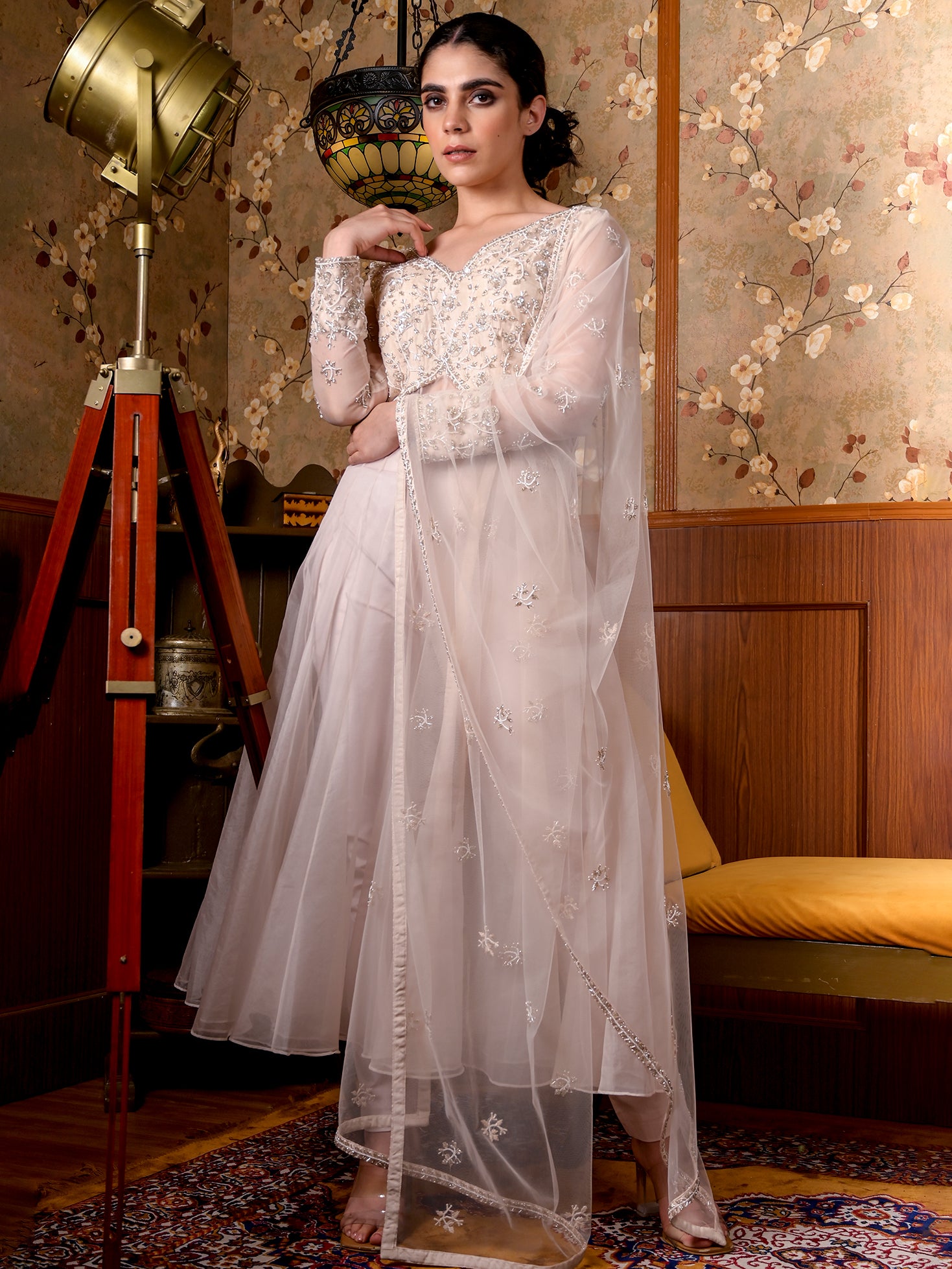 Item Contains - 3 Pcs (Sheer Anarkali With Pencil Pant & Dupatta)
