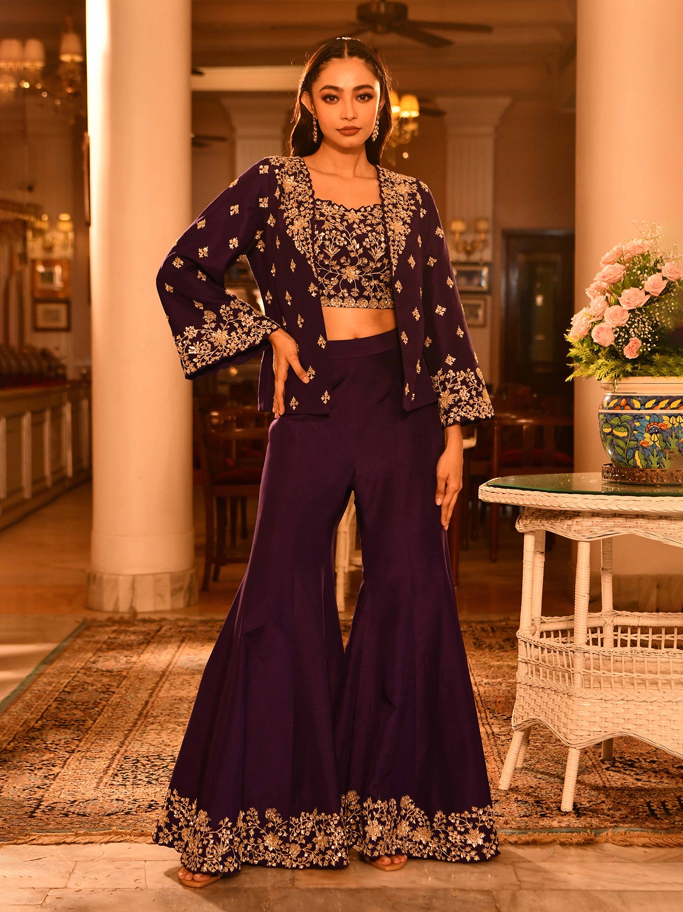Item Contains - 3 Pcs (Bustier With Short Jacket & Fishcut Pant)