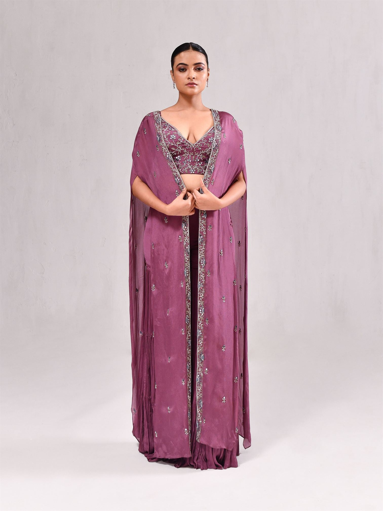 Item Contains - 3 Pcs (Bustier, Cape Jacket & Layered Crushed Pant)