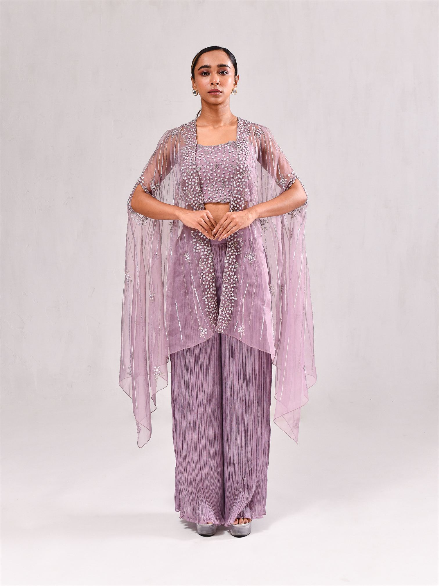 Item Contains - 3 Pcs (Bustier, Crushed Pant With Cape Jacket)